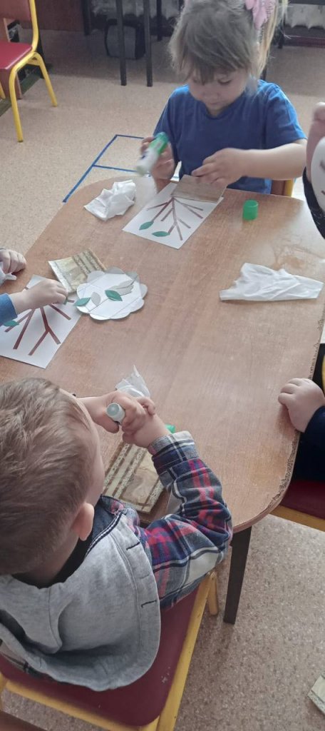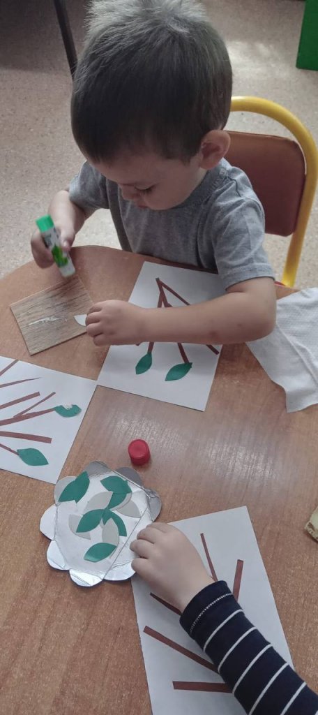 Ортаңғы топ «Ара». "Көктемгі бұтақ". Міндеттері: балаларды аппликация техникасы арқылы жапырақтары бар ағаш бұтағын бейнелеуге үйрету; симметриялы түрде орналастыру және қою қабілеттерін дамыту; көркемдік талғам мен орындалған жұмыстан қанағаттану сезімін тәрбиелеу.