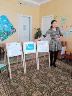 - Балалар, денелеріңді түзу ұстап, бастарыңды жоғары көтеріп, ыңғайланып отырыңдар. Көздеріңді жұмсаңдар да болады. Ауаны терең жұтып, еркін тыныс алыңдар. Өздеріңнің тыныс алуларыңды бақылап, бақытқа, махаббат пен тыныштыққа толы таза, шипалы ауаның тұла бойларыңа толғанын сезініңдер. Ал енді, көздеріңді ашсаңдар да болады.