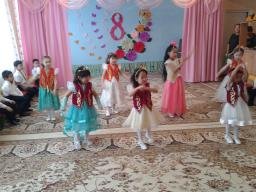 Қыздардың орындауында «Қарлығаш» биі орындалды. Аналарына «Ай дидарлы анашым», «Мамам гүлдің бақбаны» әндері орындалды. Балалар тақпақтарын айтты. Ерекше есте қаларлық сәттердің бірі әкелер мен қыздар биі, барлық қонақтарға жылулық сыйлады.