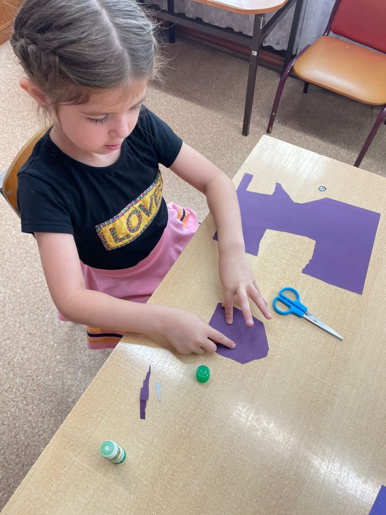 Міндеттері: балаларды аппликацияда өз көшесінің бейнесін беруге үйрету; объектілердің өлшемдері туралы идеяларды нақтылау; қайшы мен желімді ұқыпты пайдалана білуді бекіту; ұжымдық жұмыс дағдыларын дамыту; бірге жасалған суреттен (макеттен) рахат пен қуаныш туғызады.