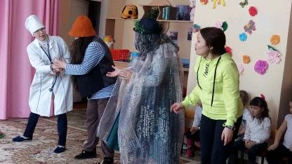 В соответствии с планом мероприятий «Казахстан – территория доброты» В детском саду прошли мероприятия, посвященные Дню здоровья. В этот день в музыкальном зале для всех детей были организованы развлечения, в гости к детям приходили сказочные герои: Доктор Айболит, Кикимора, Водолей, Бармолей. Герои предлагали ребятам разгадать загадки, поиграть в игры, помериться силами. Ребята с героями отправились в путешествие за
